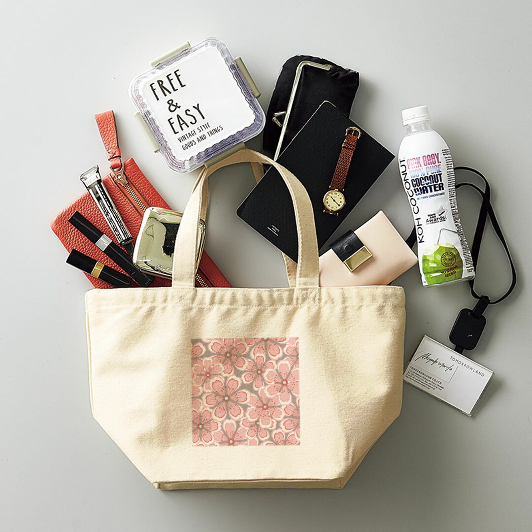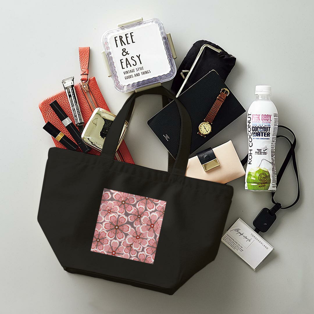デザインランチバッグ キャンバス デイパック バッグ レディースバッグ トートバッグ ナチュラル 黒 black 004252 花 フラワー ピンク